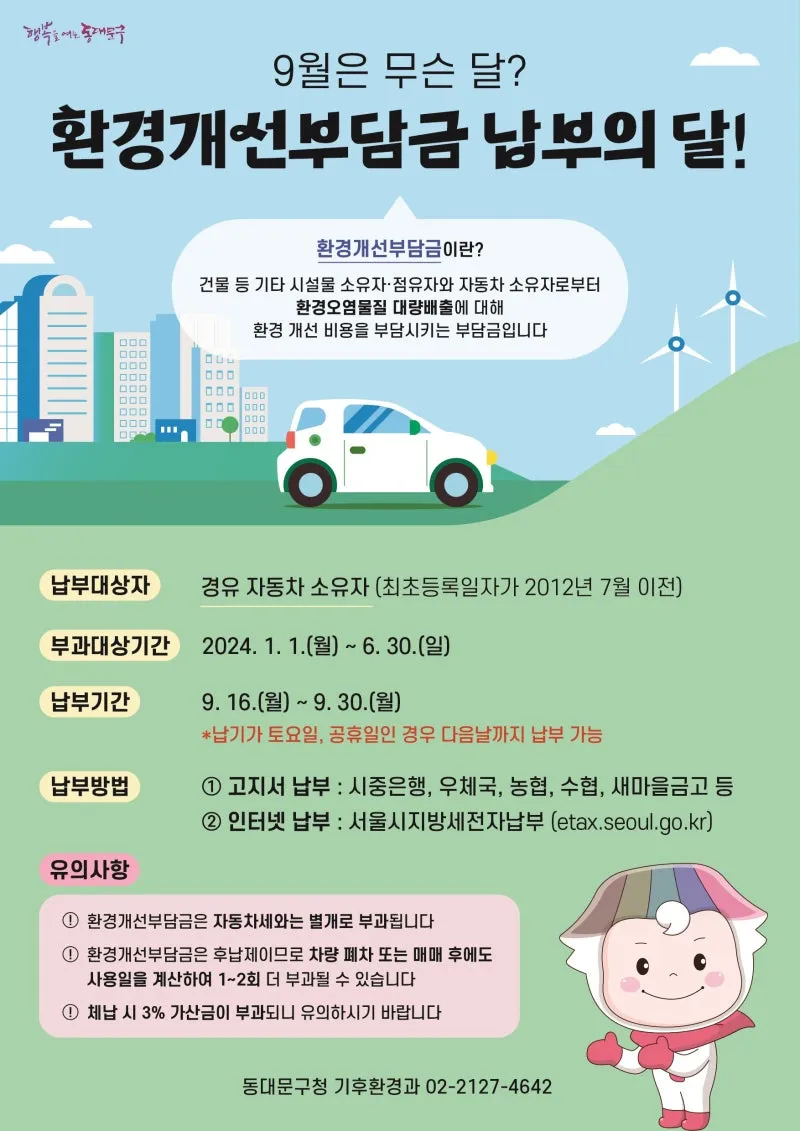 9월에 재산세 말고 또 납부해야 하는 게 있다고요❓ 경유 자동차 소유자라면 환경개선부담금 납부 필수❗ |