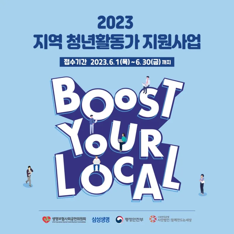 지역에서 비영리활동을 펼치고 있는 만 39세 이하(신청일 기준) 청년이 대표인 비영리단체를 대상으로 하는 이번 2023 「지역 청년활동가 지원사업」 공모는 '지역공헌 및 지역사회 문제해결'을 주제로 경제, 일자리, 교육, 도시재생, 관광, 청년문화, 환경, 문화예술 등의 분야에서 지원받고 있습니다. 6월 30일(금)까지 접수가 진행되오니, 지역공헌 및 지역사회 문제해결에 관심이 있으신 청년활동가 여러분께서는 아래의 공고를 유심히 봐주세요!
