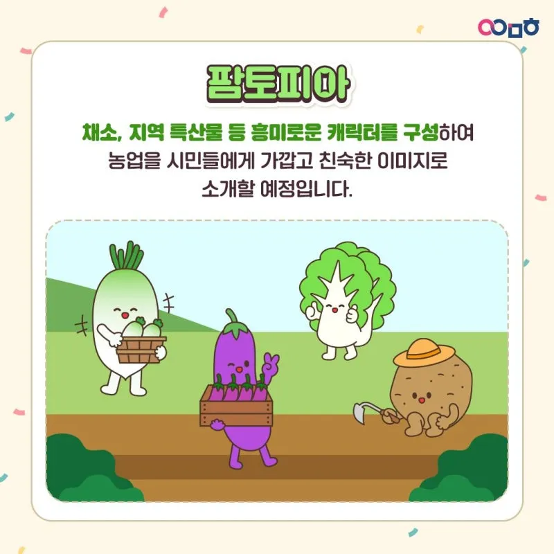채소, 지역 특산물 등 흥미로운 캐릭터를 구성하여