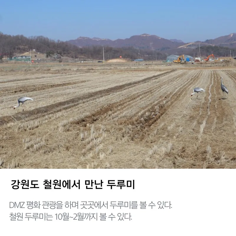 보통 철원 두루미는 10월부터 볼 수 있어요.