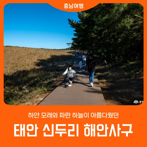 아이들과 부모님이 함께 신두리 해안사구를 돌아보는 모습을 볼 수 있었는데 좀 전에 보았던 모래 체험하는 곳에서 아이들이 나가지 않으려고 해, 부모님과 실랑이를 하는 모습을 보면서 어린 시절 엄마 아빠와 놀러 다니던 기억이 소환되어 기분 좋은 시간을 가질 수 있었습니다. 앞으로 잘 가꾸고 보존해서 물려주어야 할 유산이라는 생각을 하면서 다시 돌아보게 되는 신두리 해안사구,