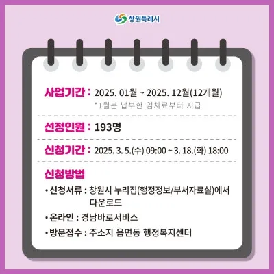 {"title":"청년 월세 지원사업 참여자 모집 안내💰","source":"https://blog.naver.com/cwopenspace/223792261451","blogName":"창원시 공..","domainIdOrBlogId":"cwopenspace","nicknameOrBlogId":"창원시","logNo":223792261451,"smartEditorVersion":4,"meDisplay":true,"lineDisplay":true,"outsideDisplay":true,"cafeDisplay":true,"blogDisplay":true}