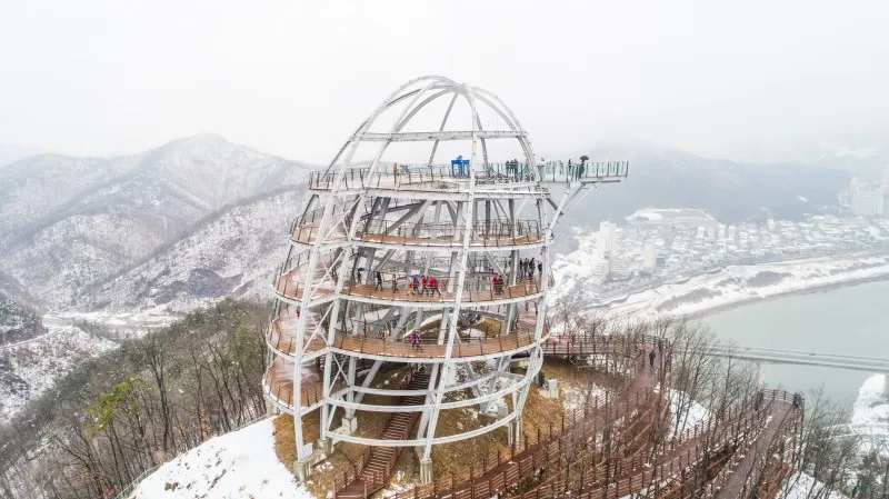 눈 덮인 산 정상에 우뚝 서 있는 '만천하스커이워크'에서 그 아래 맑은 겨울 남한강의 풍광을 볼 수 있지요~ 또한 모노레일, 외줄을 타고 활강하는 짚와이어, 산악형 롤러코스터인 알파인코스터도 함께 즐길 수 있습니다. 겨울 '만천하스카이워크'에서 시원한 바람과 탁트인 전망을 감상해 보세요!