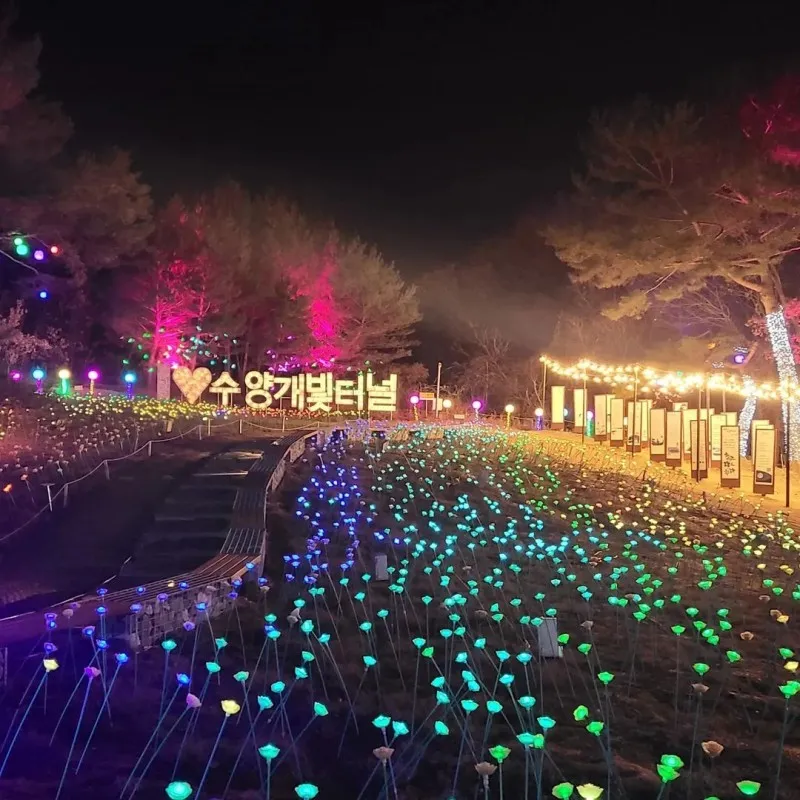 적성면 애곡리에 위치한 오색찬란 빛의 왕국 단양수양개빛터널은 터널형 복합 멀티미디어 공간인 ‘빛터널’과 5만 송이 LED 튤립이 빚어내는 환상의 일루미네이션을 체험할 수 있는 ‘비밀의 정원’으로 구성되었습니다.아름다운 빛을 뿜어내는 조명과 잔잔한 음악 선율이 흐르는 수양개빛터널에서 사랑하는 사람과 행복한 산책을 즐겨보세요!
