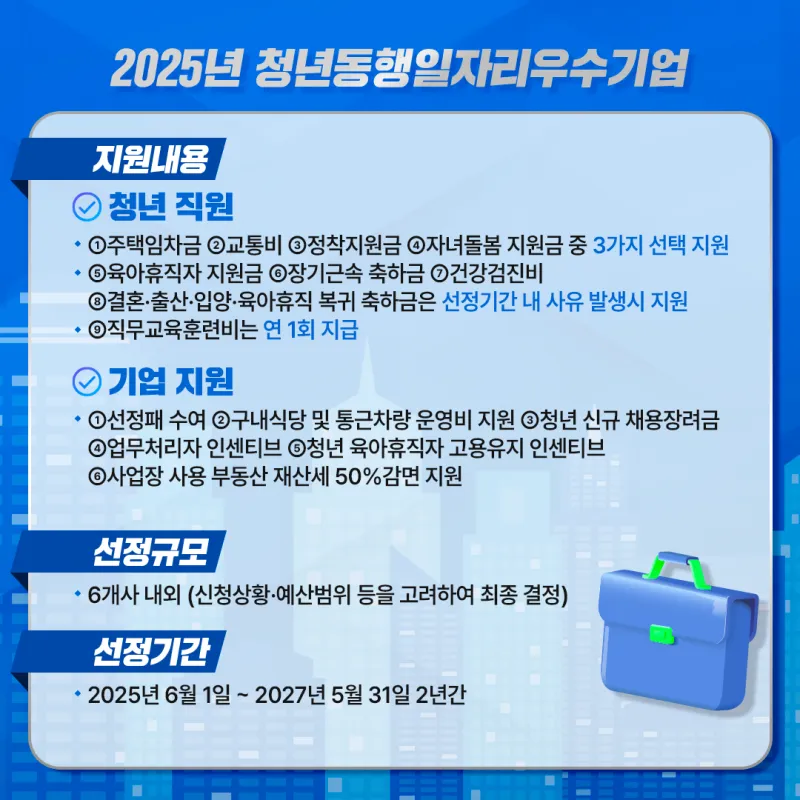 좋은 근로 조건을 제공하는 ‘청년동행일자리우수기업’을 모집합니다.