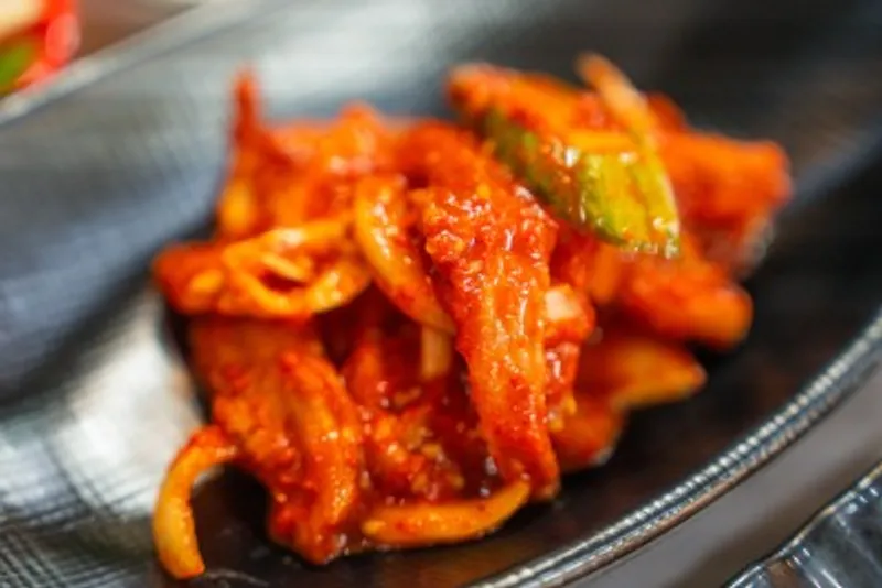 반찬으로 나온 우럭탕수 입니다. 매콤한데요.
