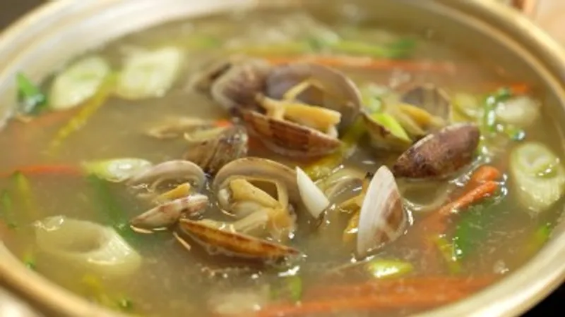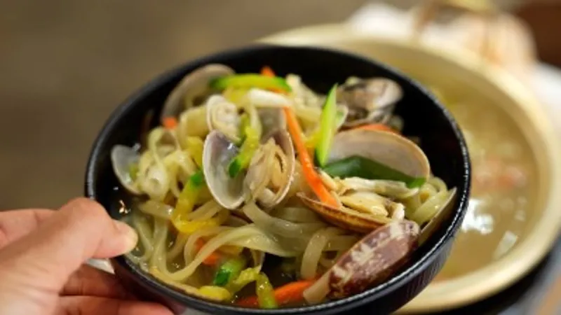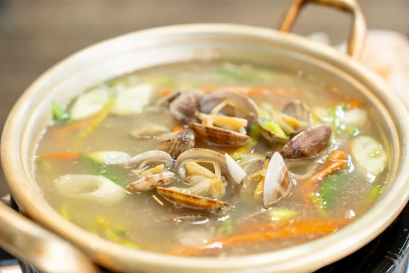 각종 야채와 바지락이 가득해서 정말 고소하고 풍미가 가득합니다.