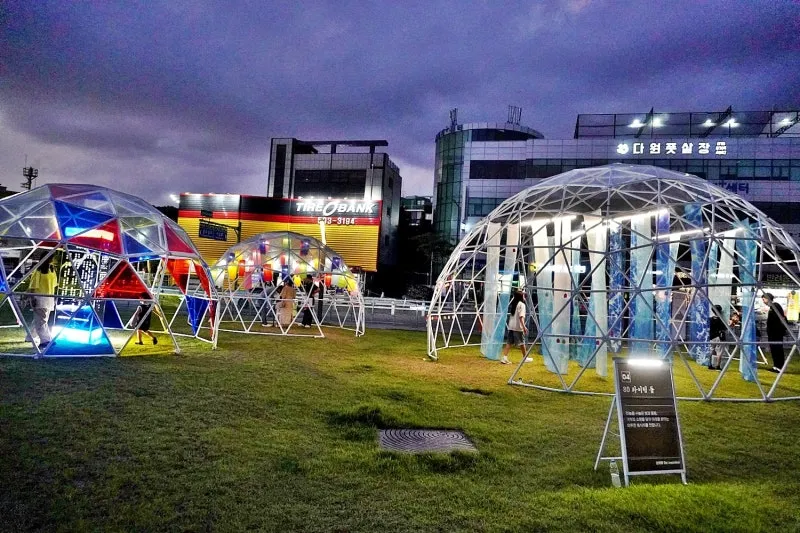 총 3개의 프레임돔으로 구성된 80 라이팅 돔은