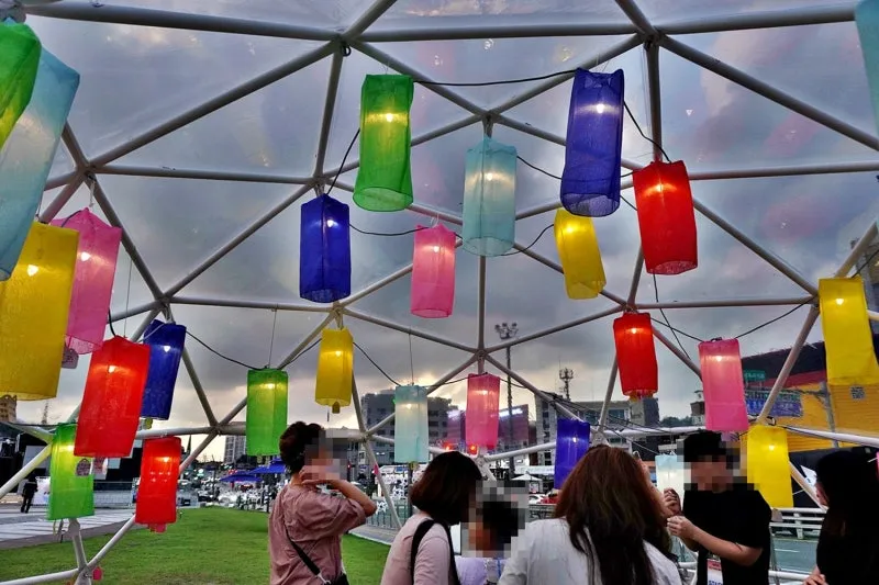 하늘을 수놓은 빛과 풍등, 쪽빛 공간에서 각자의 소망을 담아 미래를 밝힙니다.