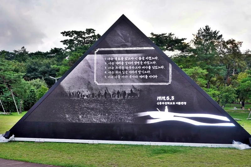 35년의 긴 어둠을 뚫고 찾아온 광복을 길을 지나 희망을 새깁니다