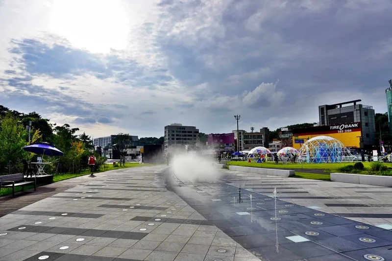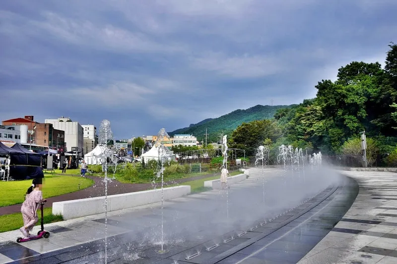 한낮부터 늦은 밤까지 아이들의 놀이터가 되었던 바닥분수에도