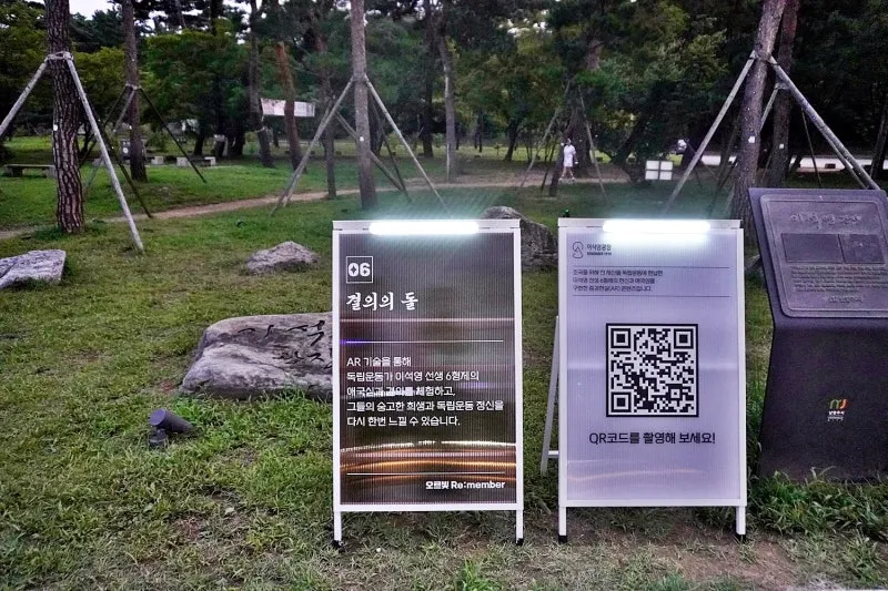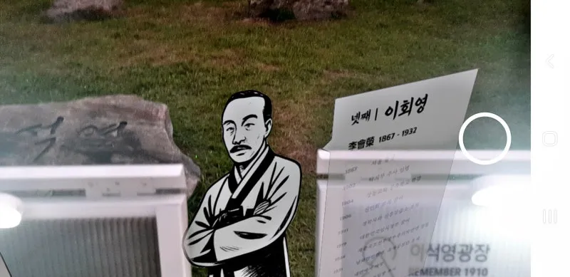 이석영 광장 돌 표지석과 스마트폰 가상공간이 결합하여 이석영 선생 6형제를 만납니다.