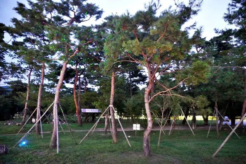 어둠이 짙어지면서 소나무가 반짝반짝 빛의 옷을 입었습니다.