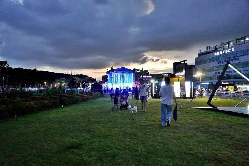 해가 지면서 이석영광장은 분위기가 바뀌면서 더욱 화려해집니다.
