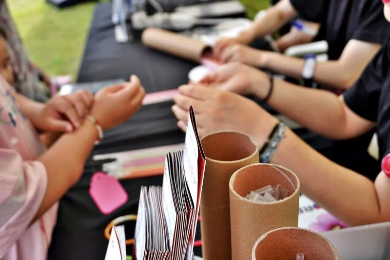 종합안내소에서 야광 팔찌와 응원카드를 작성한 후