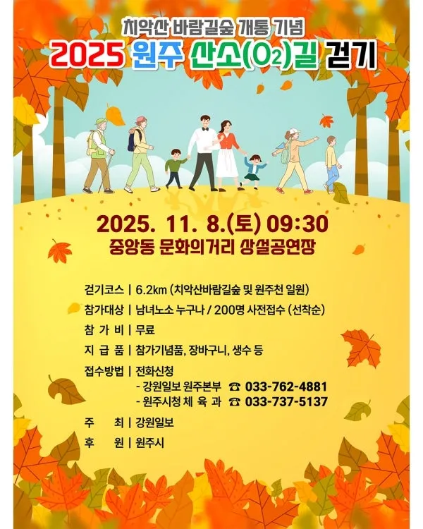 2025 원주 산소(O2)길 걷기 행사를 진행합니다.