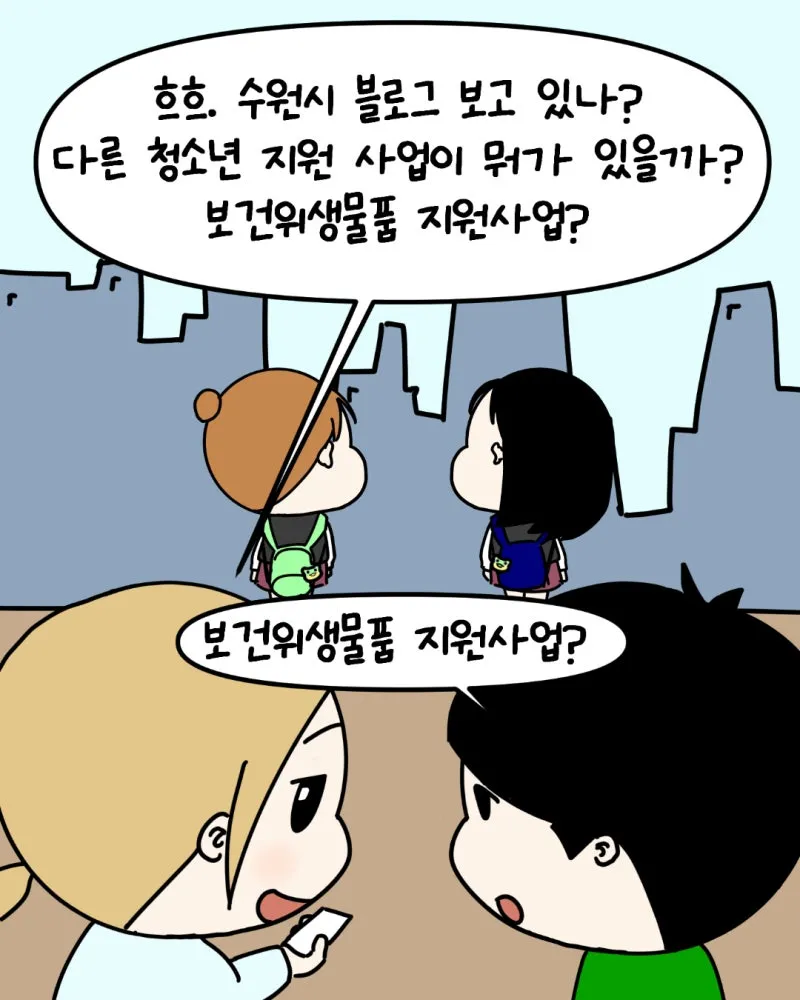 오늘은 수원시가 진행하는 교통비 지원 / 여성청소년 보건위생물품 바우처 지원