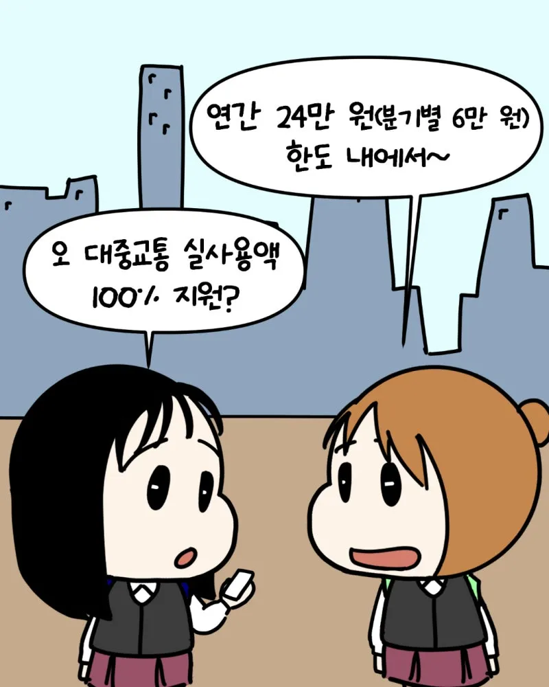 💡연간 24만 원(분기별 6만 원) 한도 내에서 대중교통 실사용액의 100% 지원