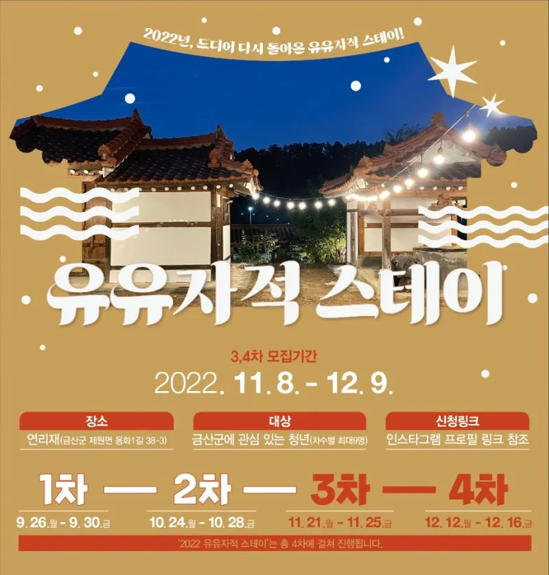 ▶ 모집마감기간: ~ 스테이 3일전, 선착순으로 참가비 입금 후 즉시 신청 됩니다.