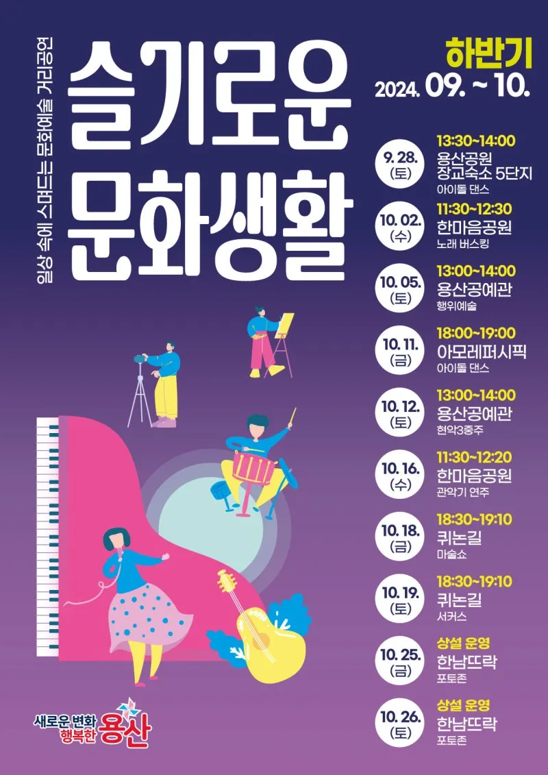 한 달간 용산구 곳곳에서 다양한 장르의 거리공연이 펼쳐집니다.