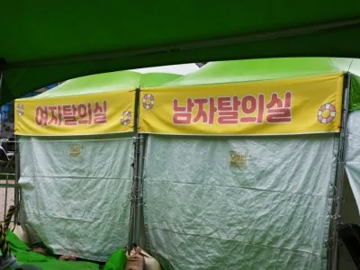 탈의실이 간이 천막으로 되어 있었습니다.