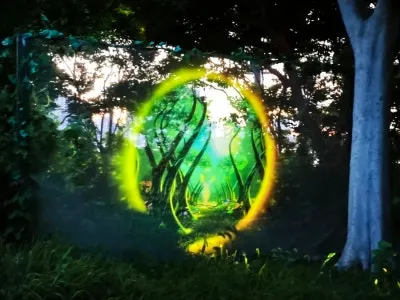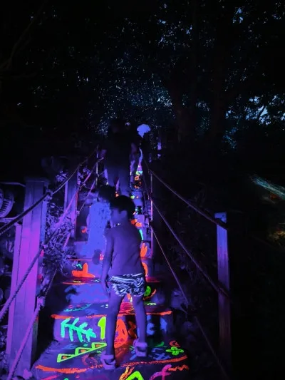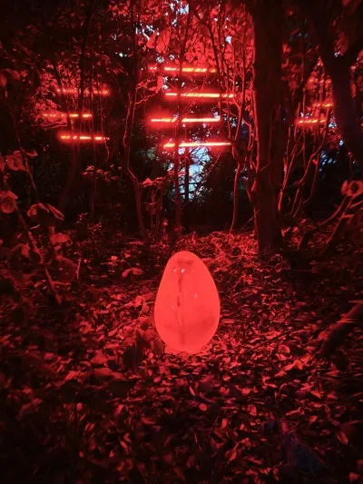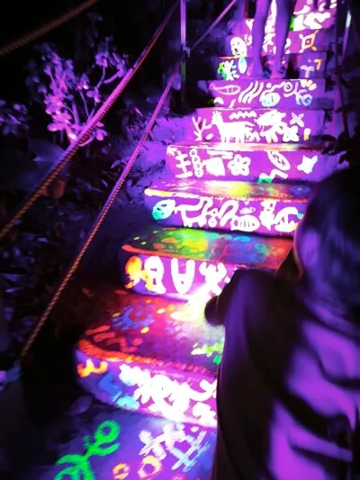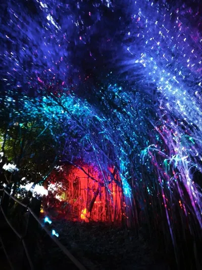 나무 사이로 비치는 조명, 바위 위에 반짝이는 빛들이 마치 동화 속 한 장면 같았습니다.