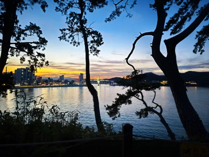 물놀이를 마치고 해가 지면, 진하해수욕장에서 가까운 명선도로 향했습니다.