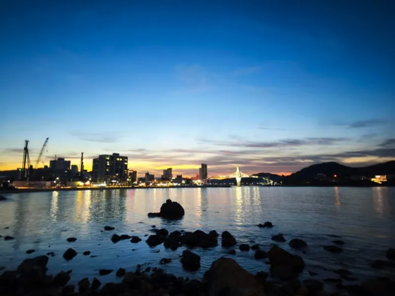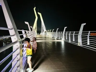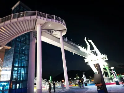 밤이 되면 다리 전체가 형형색색의 LED 조명으로 빛나는데, 그 아래에서 바라본 풍경은 정말 압도적입니다.
