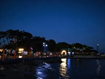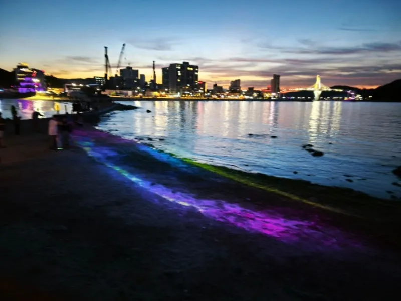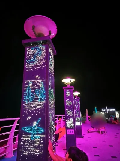 다리 기둥과 주변 조형물에도 바다 생물을 형상화한 조명이 반짝이며, 마치 바닷속에 들어온 듯한 느낌을 주었어요.