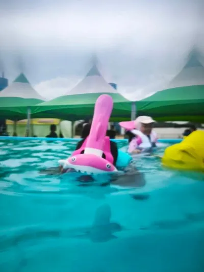 구명조끼와 튜브를 착용하고 물 위에 둥둥 떠다니며, "엄마, 물이 너무 좋아요!"라는 아이들의 웃음소리가 끊이지 않았습니다.