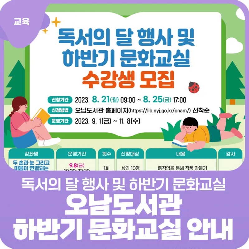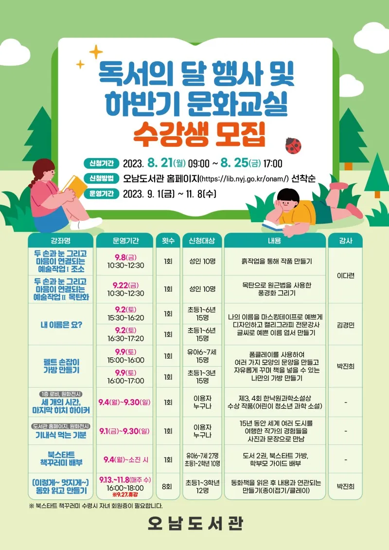 오남도서관 : 9월 독서의 달&하반기 문화교실 수강생 모집