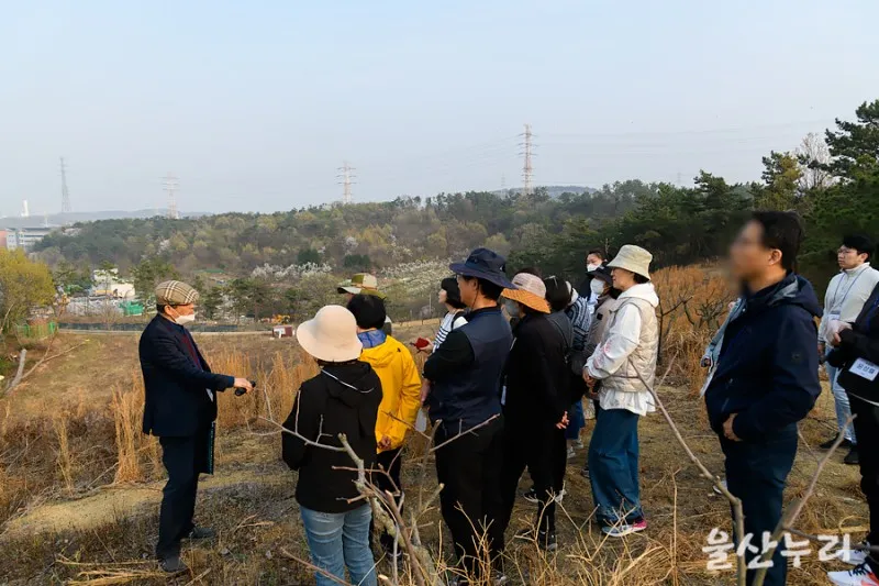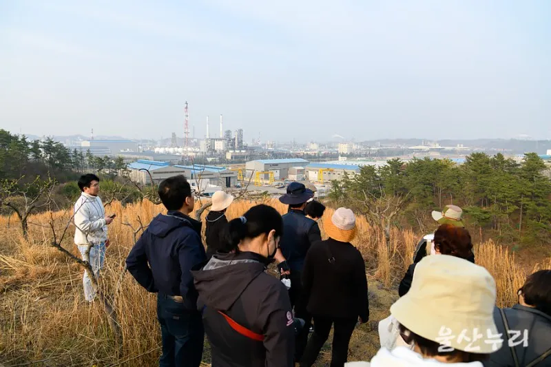 마지막으로 석유화학 단지가 내려다보이는 산으로 모두가 오릅니다. 이곳에서 지금은 사라져 버린 마채 염전에 대한 이야기를 들었습니다. 마채 염전은 울산의 여럿 염전 중에서도 맛이 가장 뛰어났다고 합니다. 소금의 맛은 토질이 좌우한다고 합니다.