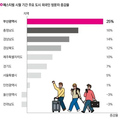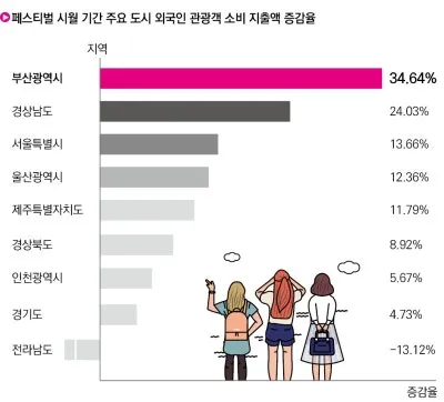 부산은 해당 기간 서울(5% 증가), 경기(7% 증가), 제주(10% 증가) 등 경쟁 도시의 외국인 방문객 증가율을 압도하는 성과를 보였다. 특히 개막일인 9월 21일에는 4만8천73명이 방문해 9월 중 최다 외국인 부산 방문 기록을 세웠다.