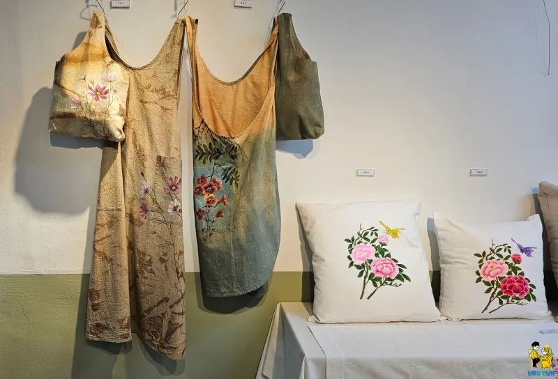 염색이 된 옷에도 그림을 그려놓으니 독특한 분위기가 한 층 더 멋스럽게 보이지요? 생활 한복 위에 덧입으면 한껏 멋부린 티가 날것 같아요.