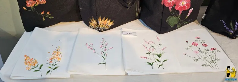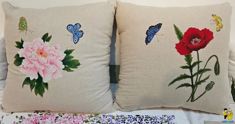 패브릭 아트라 고도 함. 천위에 다양한 야생화나 식물들을 그려 특별함을 더 하는 패브릭 아트는 초보자도 그림에 대한 부담감 없이 시작할 수 있다.