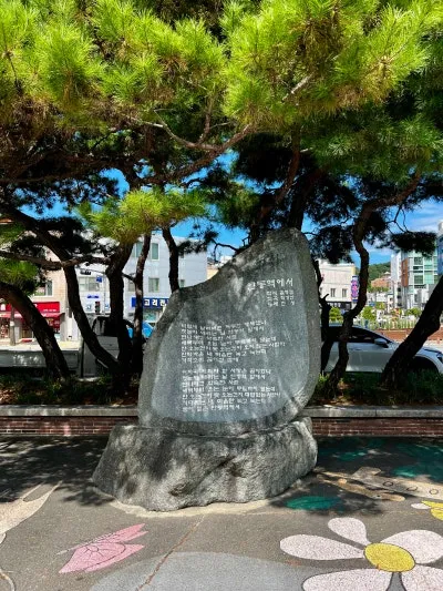 ‘안동역 앞에서’라는 비석이 세워져 있어요.