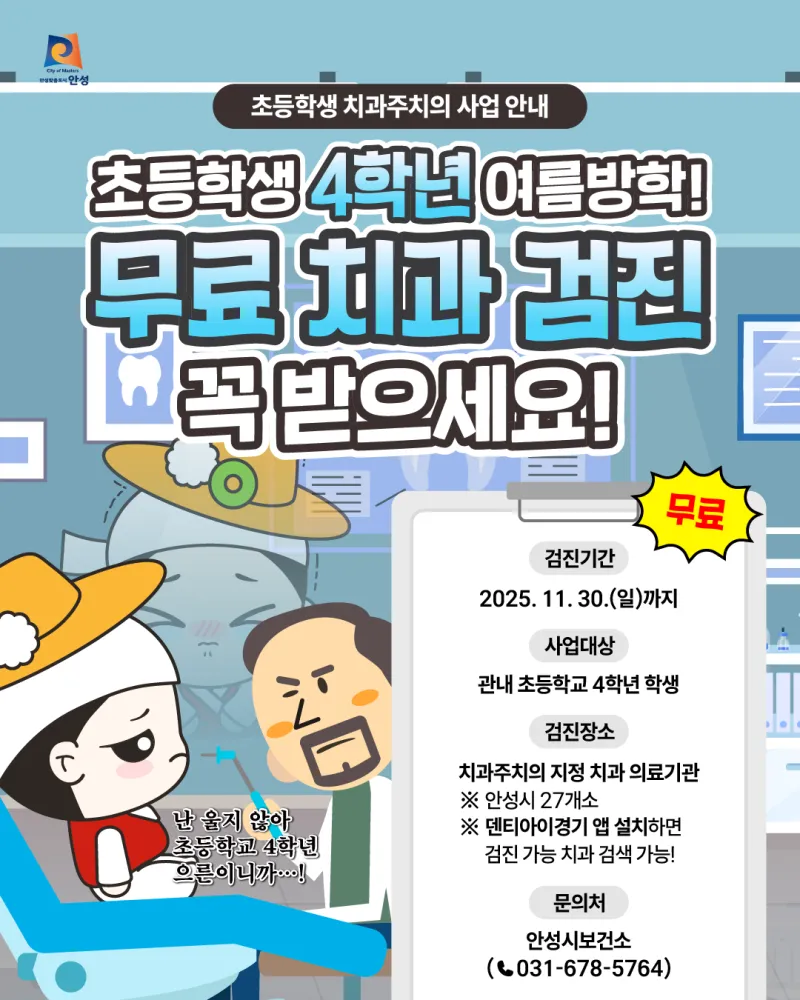#안성 #안성시 #문화도시 #여름방학 #초등학생 #무료검진 #구강검진 #치과 #양치 #건강