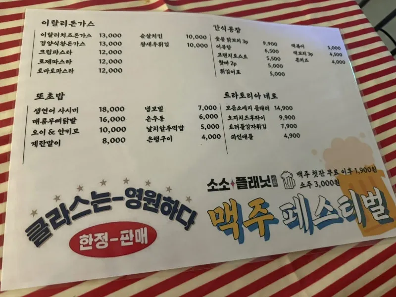 메뉴판입니다.