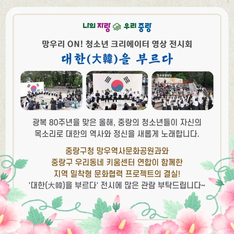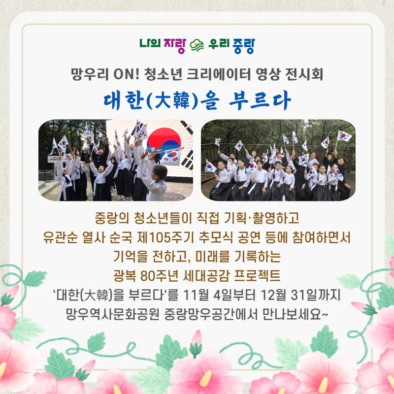 망우리 ON! 청소년 크리에이터 영상 전시회 '대한(大韓)을 부르다'
