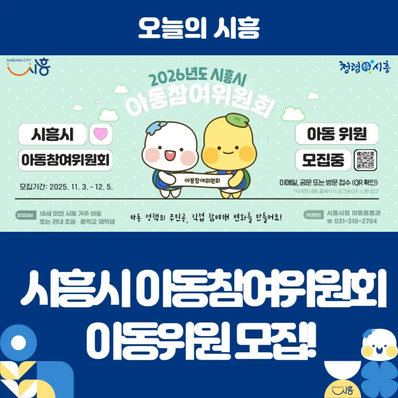 시흥시 아동참여위원회에 지금 도전하세요o((>ω< ))o