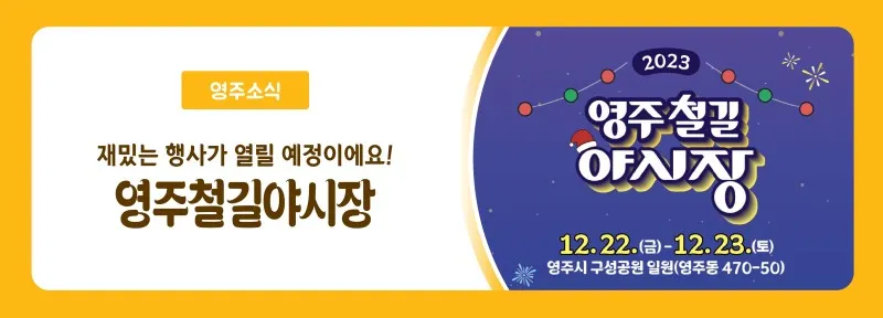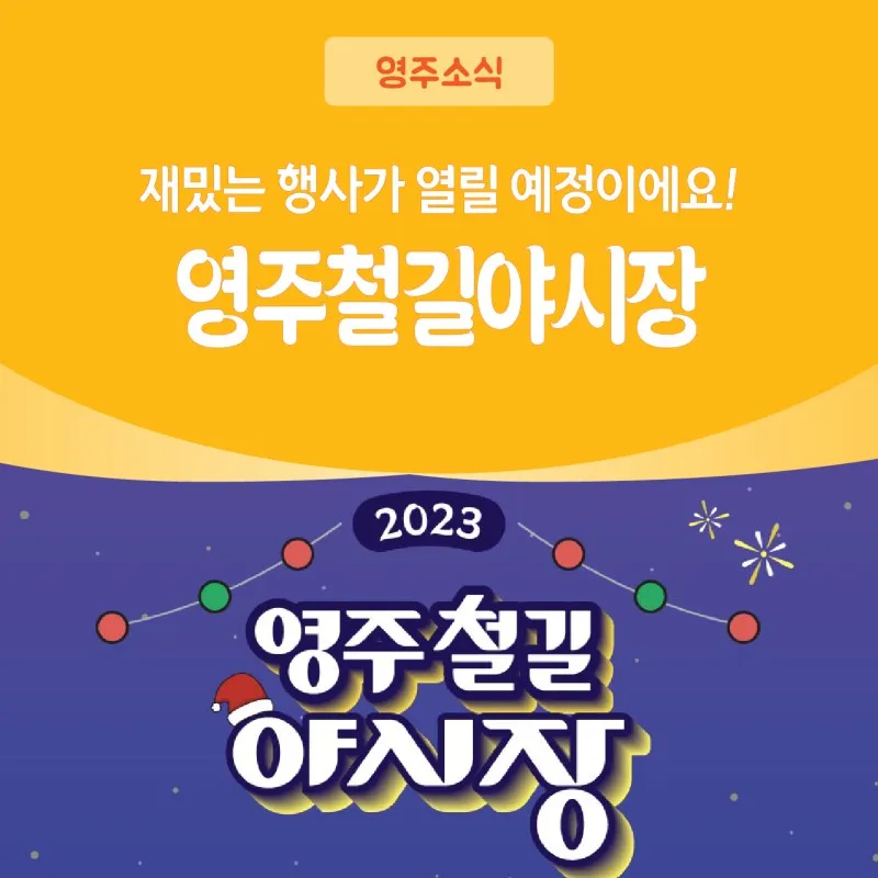 행사 내용 : 영주시 전통시장 먹거리를 담은 휴게·식음 시설 운영, 지역문화 예술인 참여 공연, 지역 특색을 반영한 체험 등