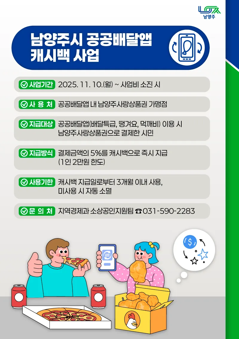 남양주시 공공배달앱 캐시백 사업 안내, 공공배달앱 쓰고 캐시백 받아가세요!