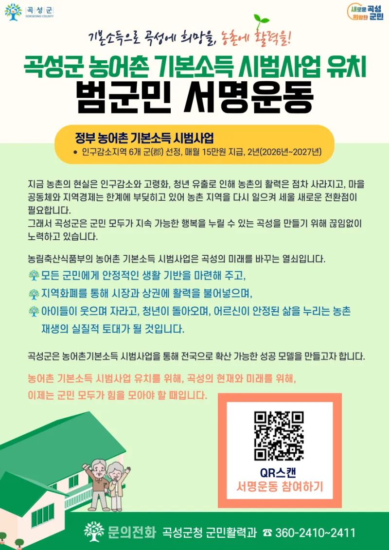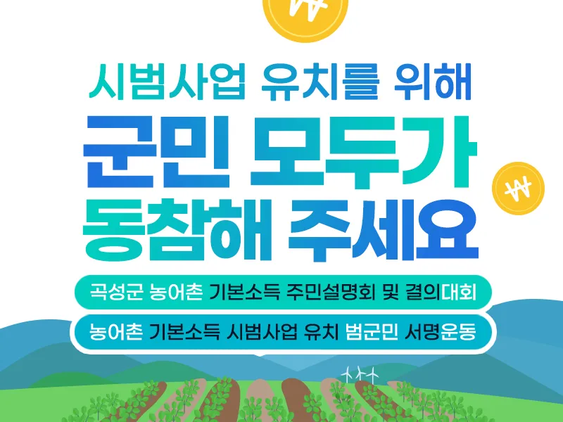 곡성의 미래를 바꾸는 농어촌 기본소득 시범사업 유치에 군민 여러분의 힘이 필요합니다.