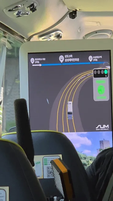 자율주행 마을버스가 차선에 잘 맞게 가고 있는지도 볼 수 있어요.