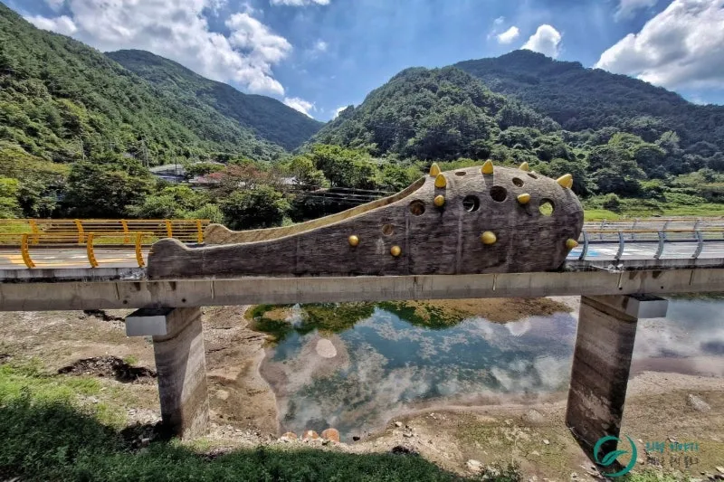 무섭고 사나운 존재로 때론 나쁜 기운을 막아주는 권위와 용맹의 상징으로 우리 역사 속에 다채롭게 깃들어있는 호랑이의 모형이 세워져 있었는데, 한우산 인근 신전마을 주민들이 한우산을 올려다봤더니 호랑이가 눈에 파란 불을 켜고 쳐다보고 있었다는 목격담이 전해지고 있는 것에 착안해 세워진 조형물이랍니다. 한우산 호랑이는 마을을 지키는 신성한 영물로 여겨져 한우산 산신으로 불리고 있다지요.