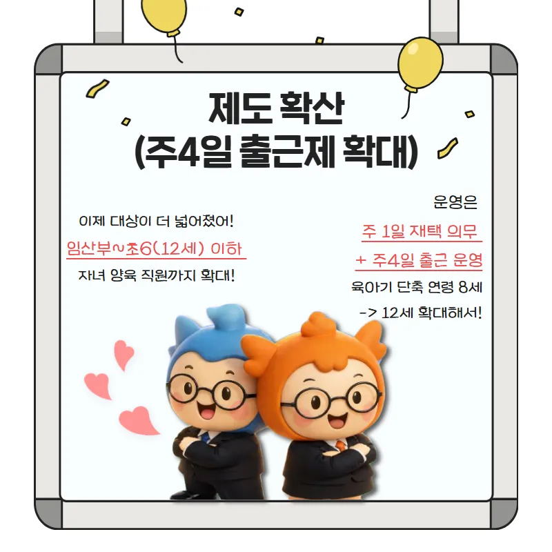 주 4일 출근제 확대와 재택근무 병행 운영을 지원하고 있어요!
