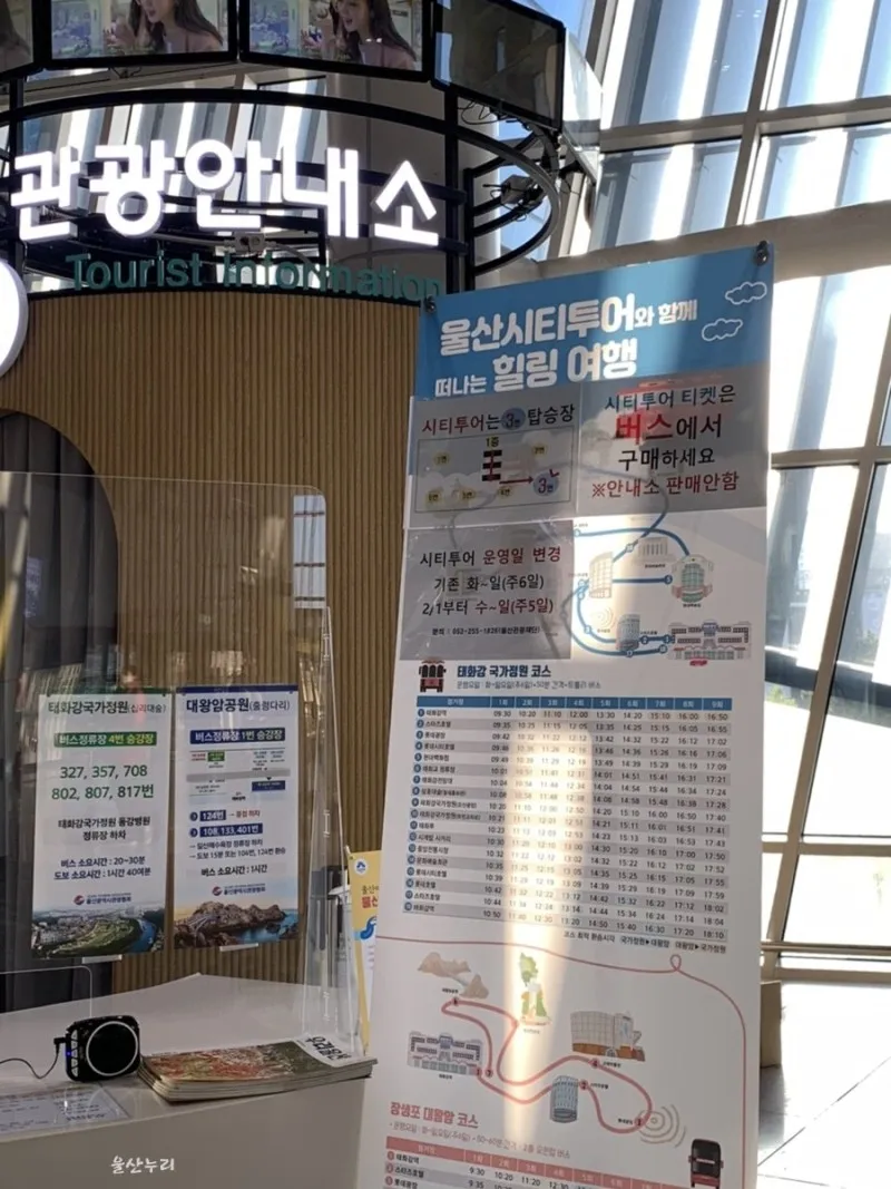 태화강역 안에 있는 울산광역시 관광안내소입니다. 안내 책자와 울산시티투어버스 정보를 얻을 수 있어요.