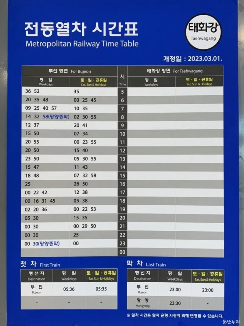 울산 태화강역 부전 방면 열차 시간표 (23년 4월 기준)