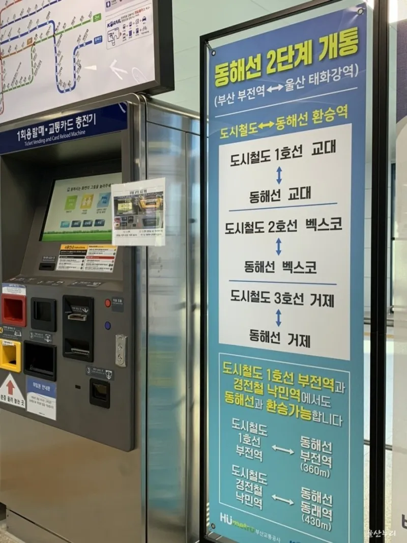 추가로 도시철도 1호선 부전역 - 동해선 부전역 / 도시철도 경전철 낙민역 - 동해선 동래역 환승 가능합니다.