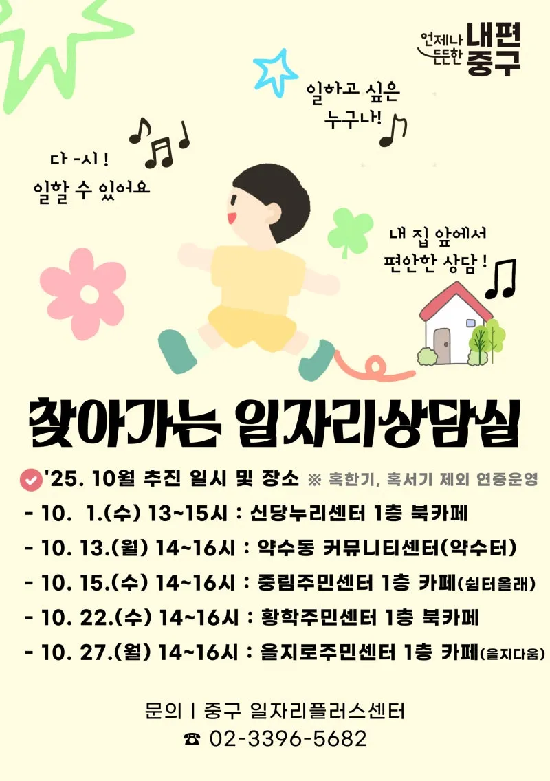 중구 일자리플러스센터(☎ 02-3396-5682)로